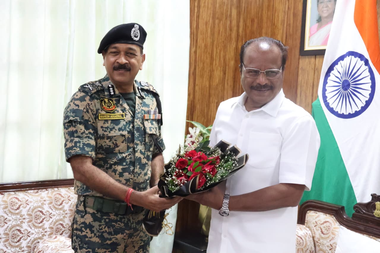 Agartala, Oct 27 — Mahesh Kumar Aggarwal, IPS, Special Director General of the Border Security Force (BSF) Eastern Command, along with Aloke Kumar Chakraborty, Inspector General of BSF Tripura Frontier, called on Tripura Governor Indra Sena Reddy Nallu at Raj Bhavan, Agartala, on Monday.