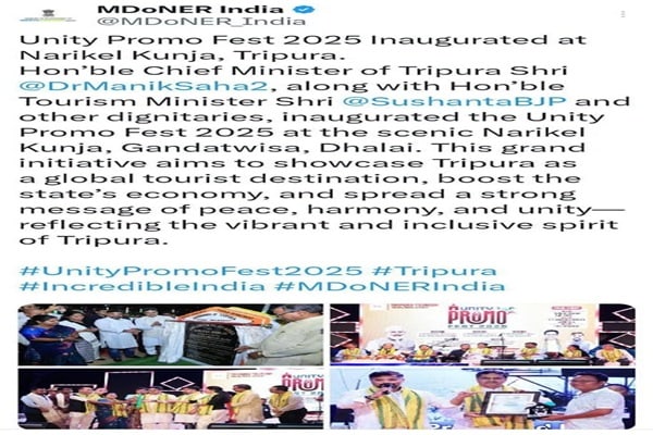 In response, State Tourism Minister Sushanta Chowdhury expressed his gratitude to the DoNER Ministry and Union Minister Jyotiraditya Scindia for their continued encouragement and support. “The appreciation from the DoNER Ministry inspires us to continue building bridges of unity and progress through culture, tourism, and community engagement,” Minister Chowdhury said in a social media post on Wednesday.