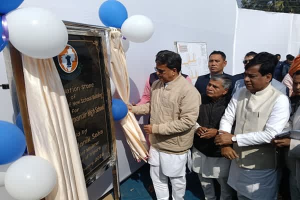 Chief Minister Dr Manik Saha on Friday participated in the *Bhumi Pujan* and foundation stone laying ceremony for the new building of Bapuji School, reiterating the Tripura government’s strong commitment to education reforms and active engagement with the Tripura diaspora.