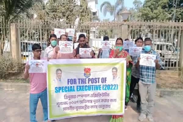 Aspirants for 6,067 Special Executive posts under the Tripura Police on Tuesday staged a protest outside the residence of Chief Minister Dr. Manik Saha, demanding the immediate completion of a recruitment process that has remained stalled for nearly three years.