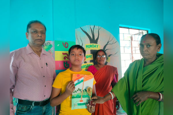 Several competitions, including drawing, recitation and handwriting, were conducted to encourage creativity and learning. In the drawing competition, Rajdeep Malakar secured first place, followed by Arnab Debnath in second and Punamita Debnath in third. The winners were presented with trophies in recognition of their talent and efforts.