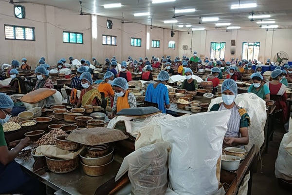 During the visit, the delegation toured several self-help group (SHG)-managed cashew processing units and gained first-hand experience of the complete production cycle — from processing raw cashew nuts to preparing finished, market-ready products. The participants closely observed modern machinery used for roasting, shelling, peeling, and grading of cashew kernels. They were also introduced to essential quality control systems and hygienic practices that ensure adherence to industry standards and enhance product value.