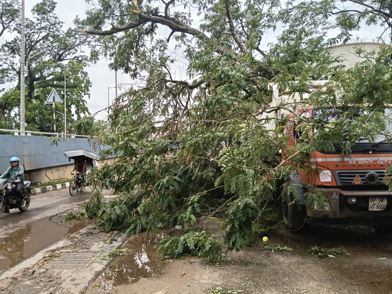 Knee-deep water inundated major roads, marketplaces, and low-lying residential areas, bringing daily life to a grinding halt. Office-goers waded through flooded streets, schoolchildren struggled to reach classrooms, and traders were left counting losses as water entered shops and disrupted business operations.
